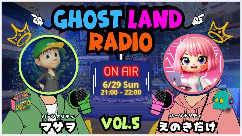 2025年8月17日に配信された「GHOST LAND RADIO」第8回(パーソナリティ:マサヲ × えのきだけ)では、普段の雑談形式から一歩進み、メタバース空間をツアー形式で紹介する特別回が放送されました。 本記事では、その内容を整理し、メタバースでできるイベ... -